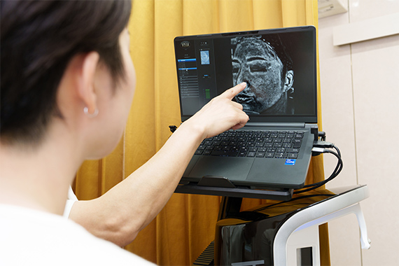 シミの悩みを改善し、理想の素肌を手にするためには、治療前の診断が重要です。当院では日本皮膚科学会認定皮膚科専門医による診察とともに、精密機器を用いた肌診断を行っています。正確な肌診断をもとに治療を進めることで、より効果を実感していただけるよう心がけております。